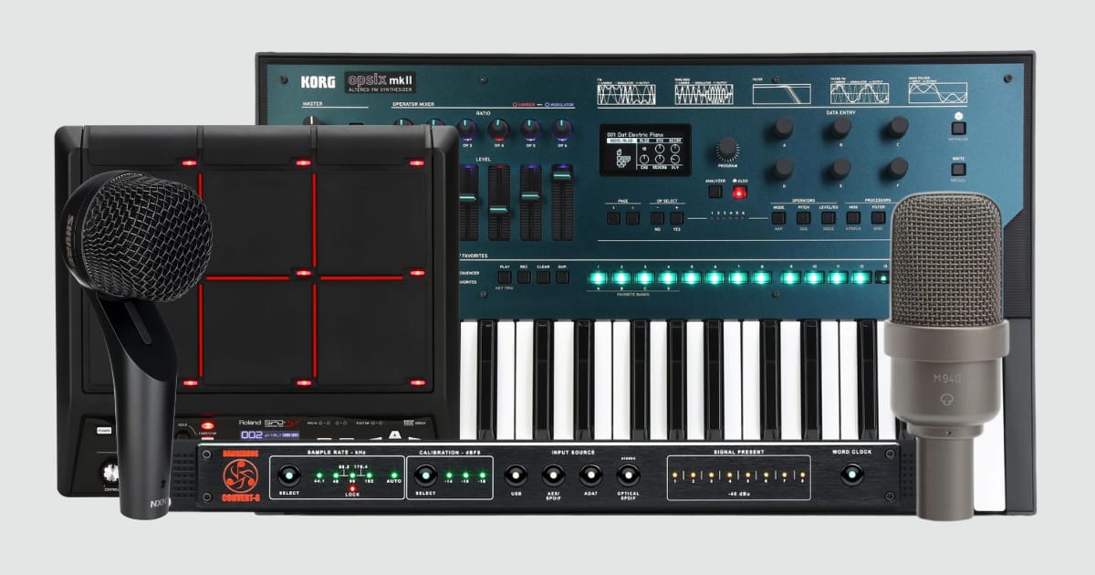 Save up to 51% on microphones, D/A converters, synthesizers & more!