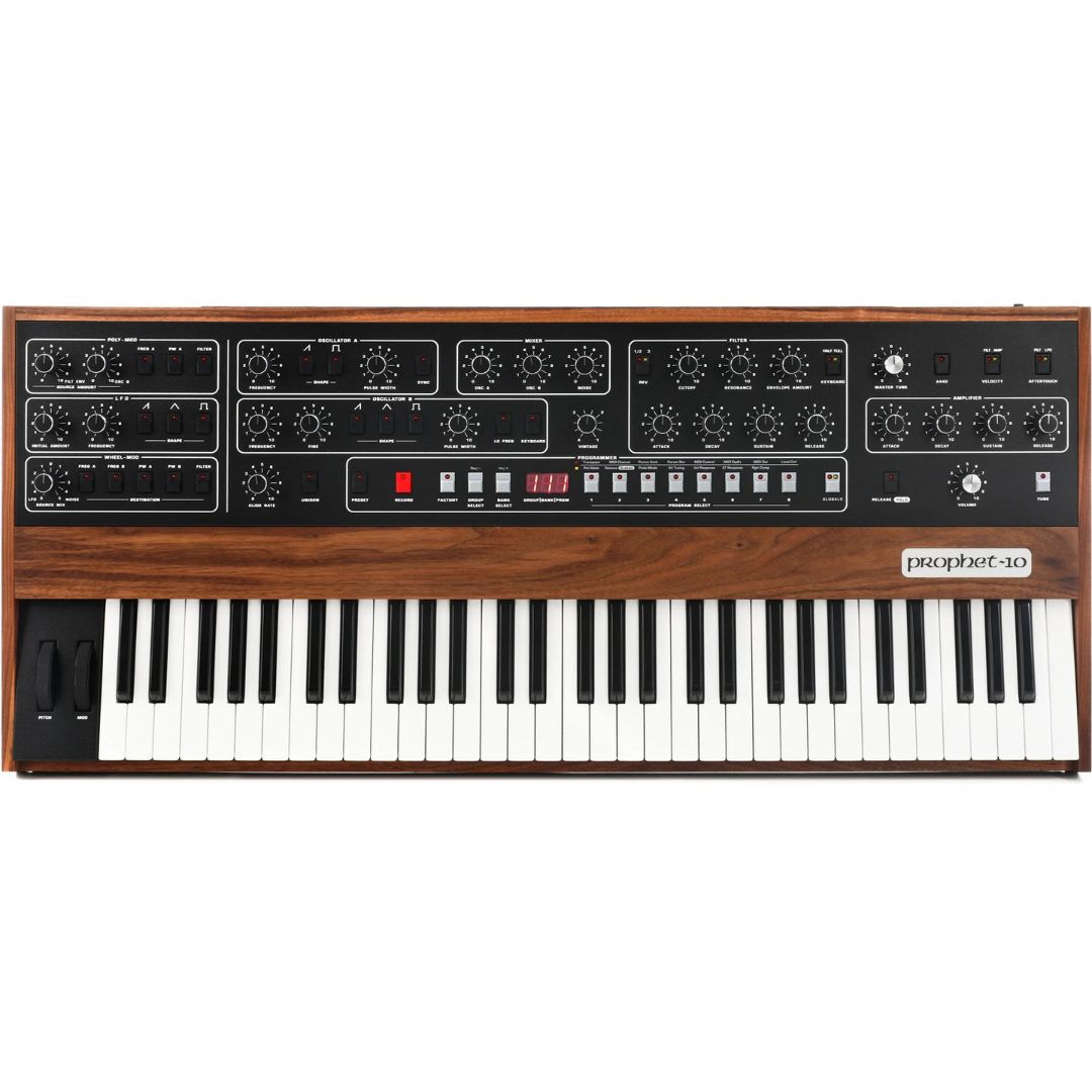 61-Key 10-Voice Polyphonic Analog Synthesizer with 2 VCOs, 4-Pole Lowpass Filter, LFO, Poly-Mod, Aftertouch, and Full-Sized Semi-Weighted Fatar