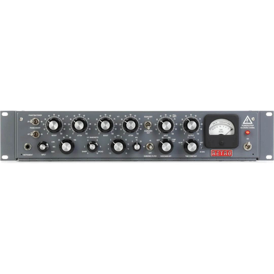 You can think of the Retro Powerstrip as your classic-studio-in-a-box: a channel strip that gives you the magical sound of a vintage tube console, a Pultec-style tube equalizer, and a British-vibed tube compressor - all in one compact 2U rackmount chassic.