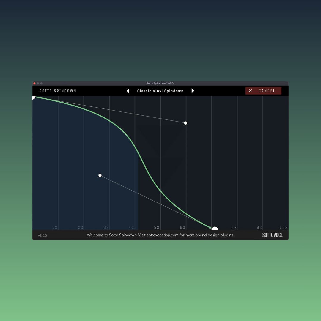 Free Effect Plugin! | Sotto Spindown is a plugin that recreates the sound of a vinyl record winding down. Instead of a fixed effect, you get full control: draw your own spindown curve and shape the slowdown exactly how you want it. Try a dramatic halt or gentle fade, the power is in your hands. Your Price: FREE |